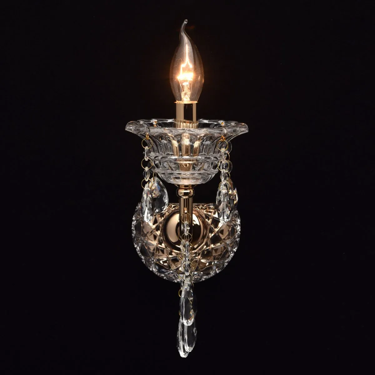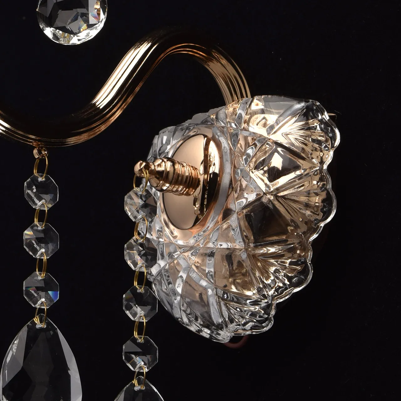 Металлическое основание цвета золото. Декор - хрусталь, декоративное стекло