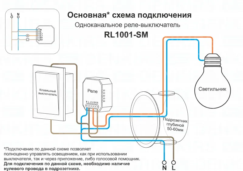 Wi-Fi реле-выключатель одноканальное Denkirs 1x2300Вт/250Вт для LED RL1001-SM купить в Люберцах по лучшей цене