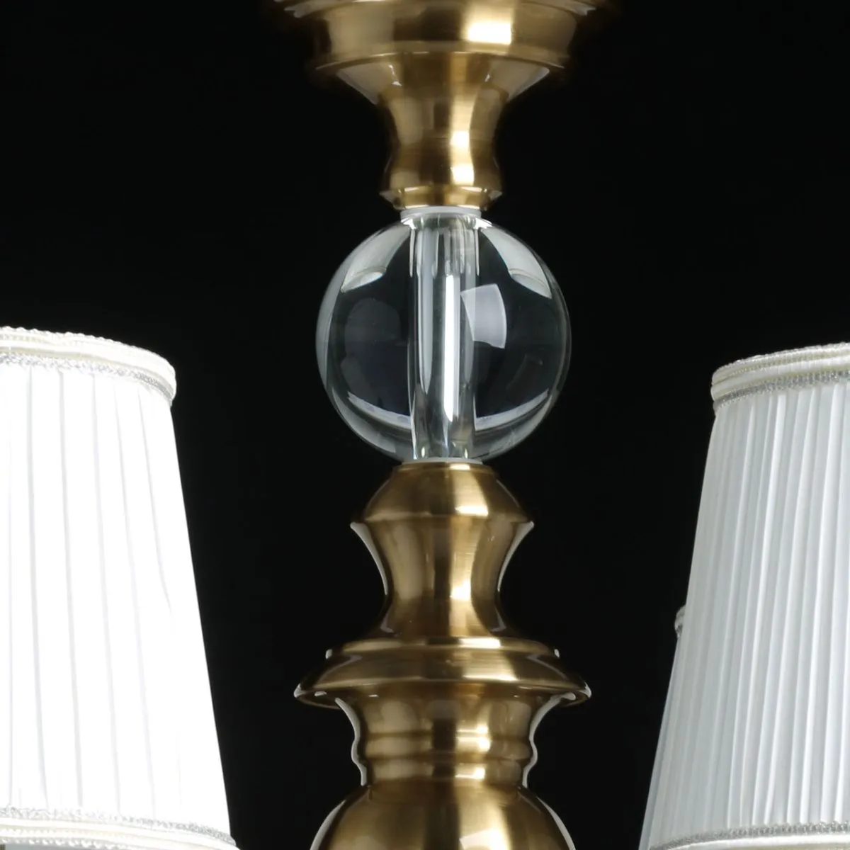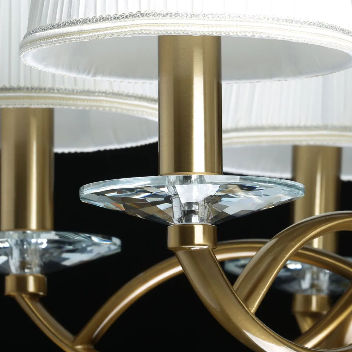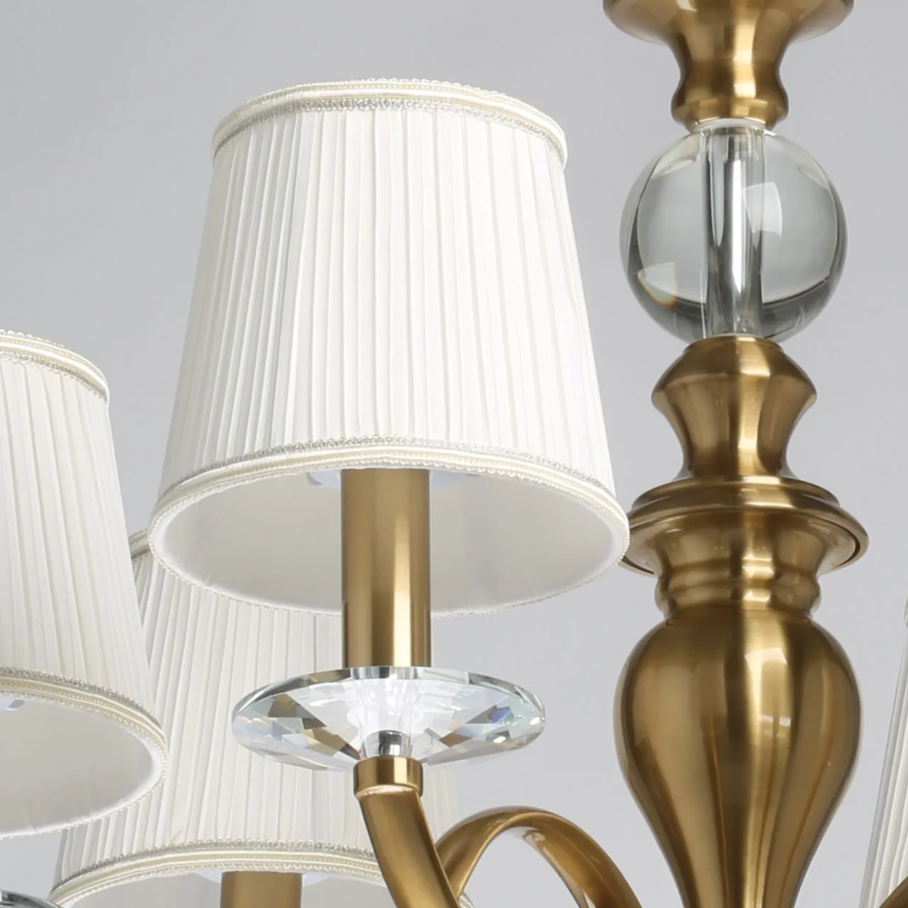 Основание/ металл/ медовая бронза Абажуры/ текстиль/ белый Декор/ хрусталь/ прозрачный