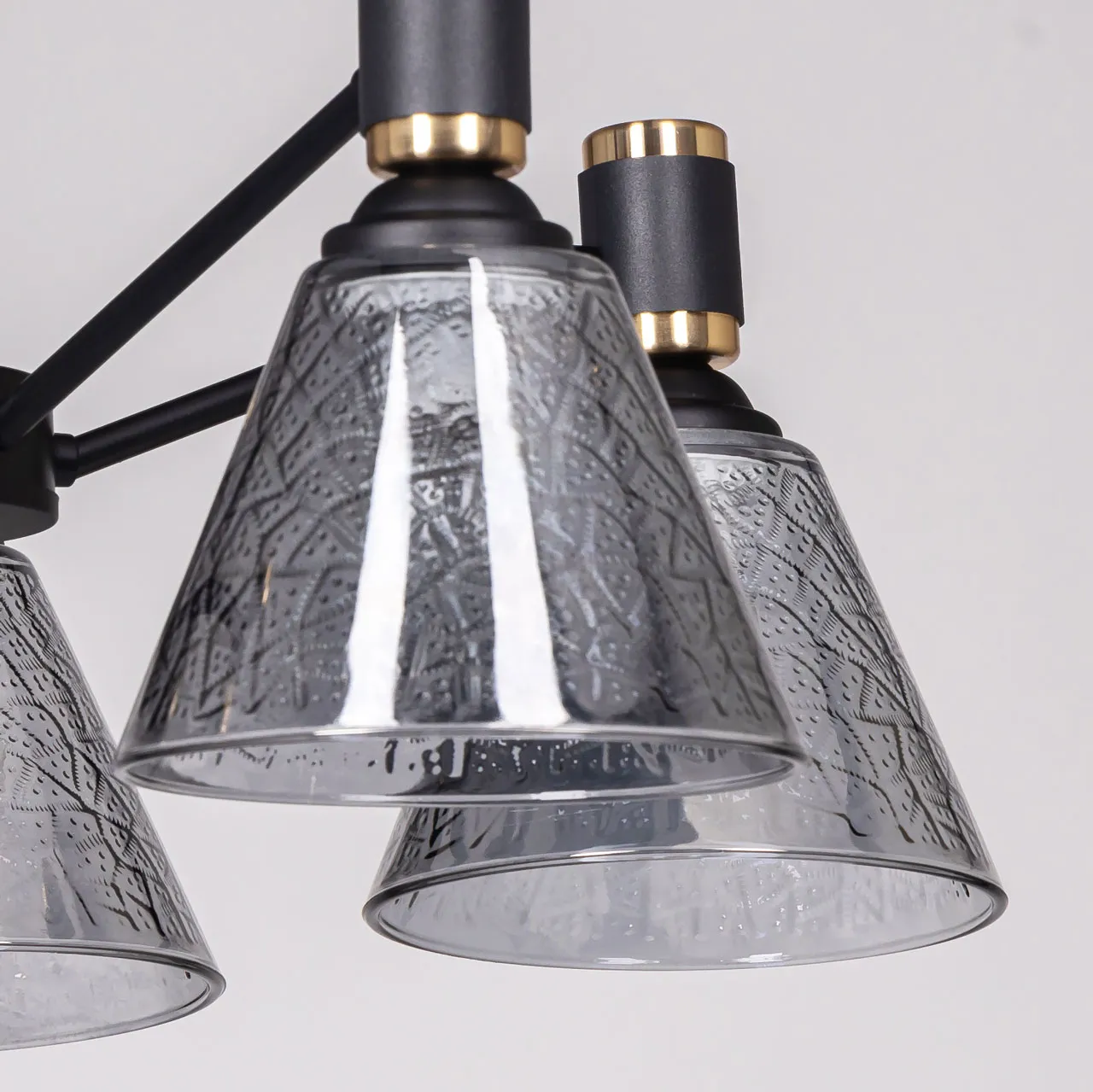 Основание/ металл/ черный, золото Плафон/ стекло/ дымчатый металлик