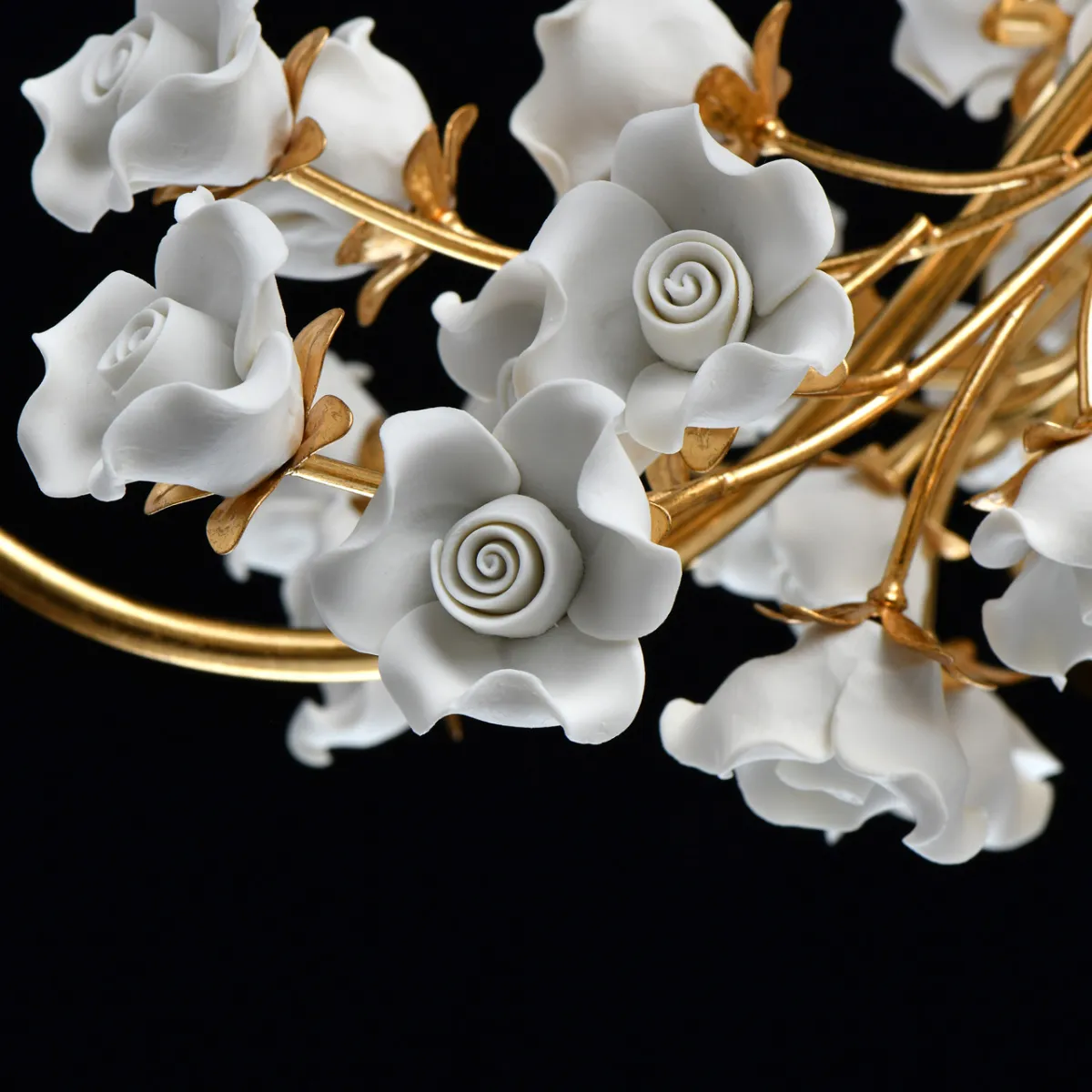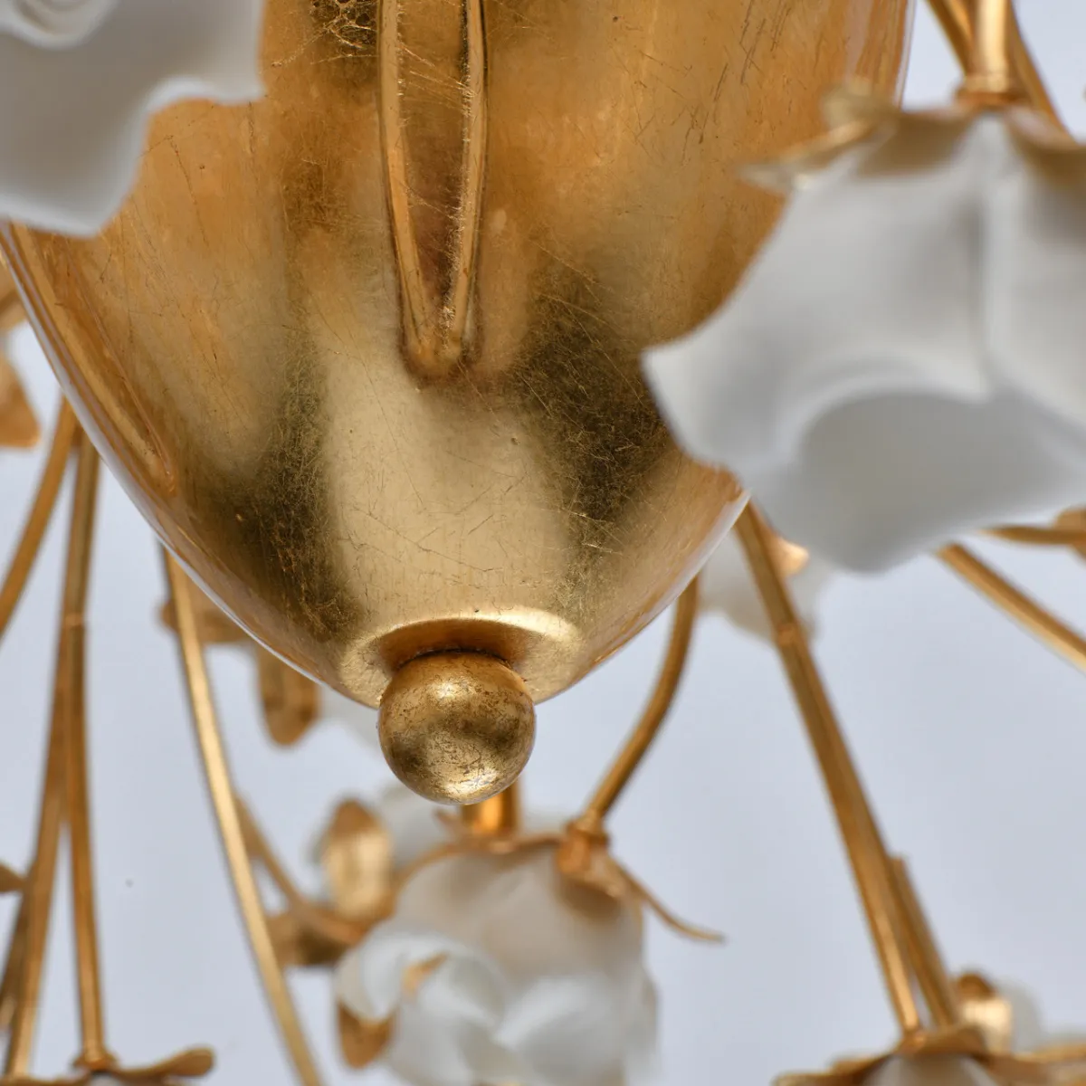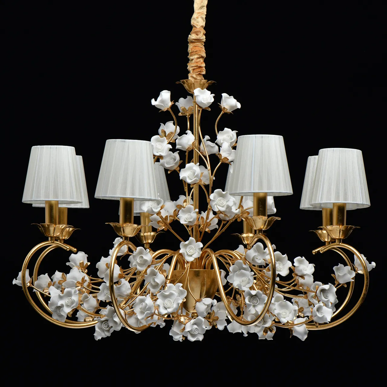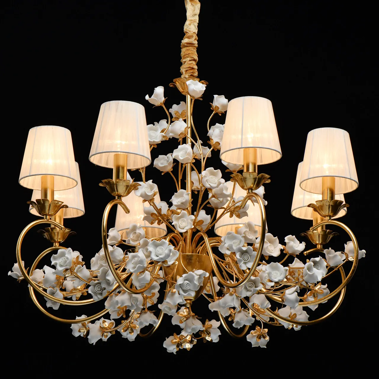 Основание/металл/сусальное золото Абажуры/органза/бежевый Декор/неглазурированный фарфор/белый