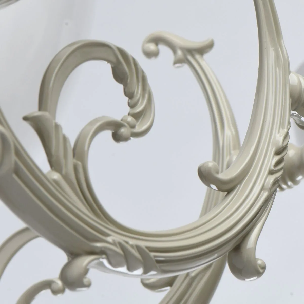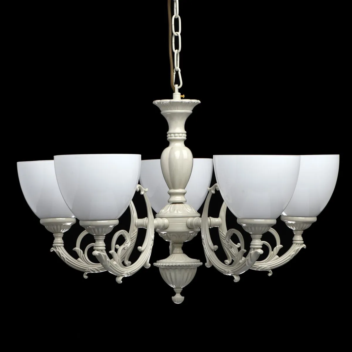 Металлическое основание цвета слоновой кости. Плафоны: белый плафон из стекла.