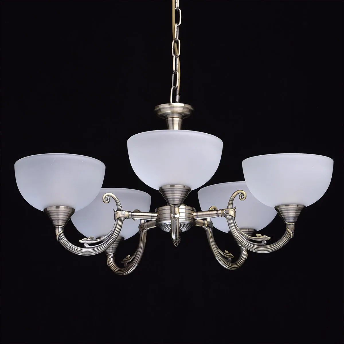 Алюминиевое основание, плафоны из матового стекла.