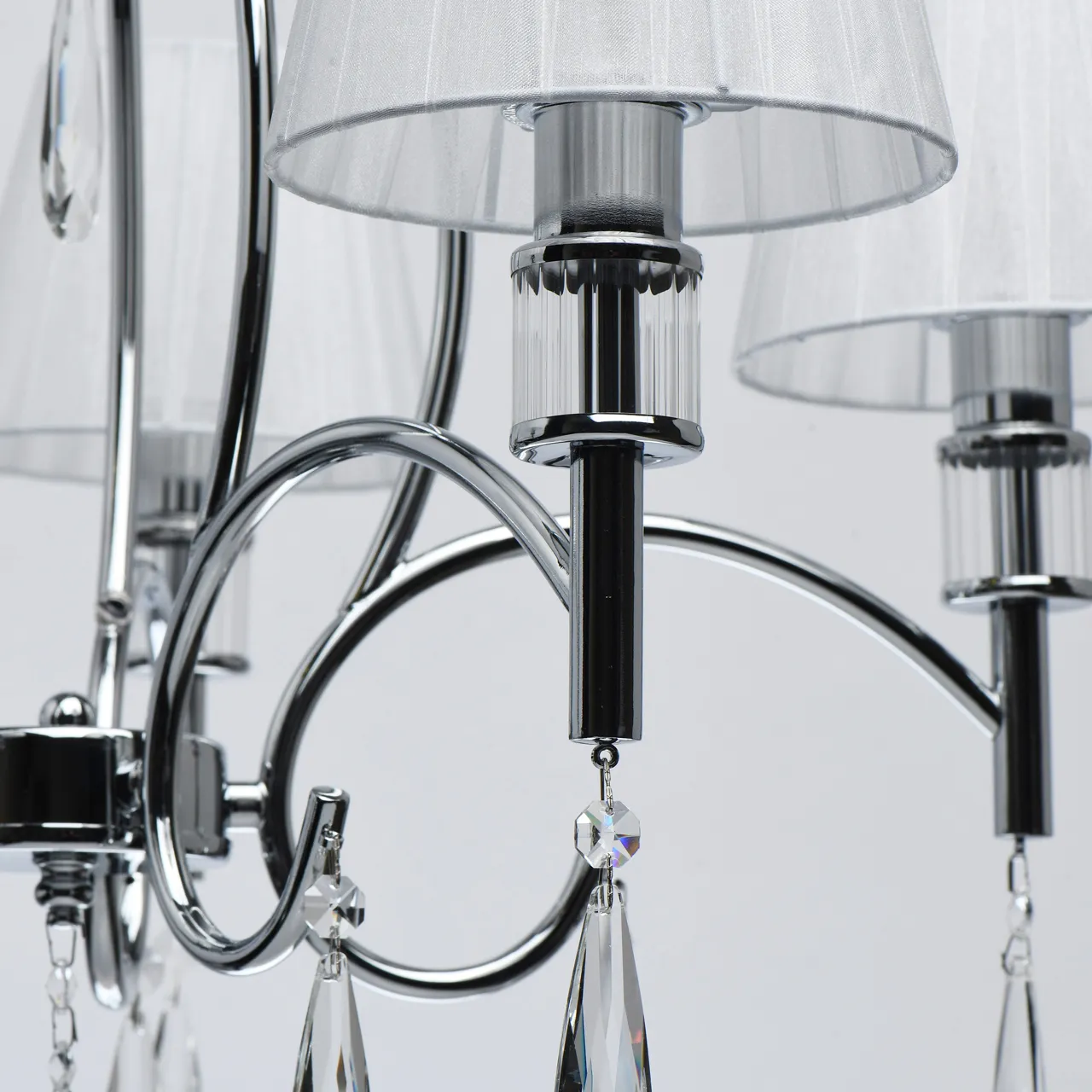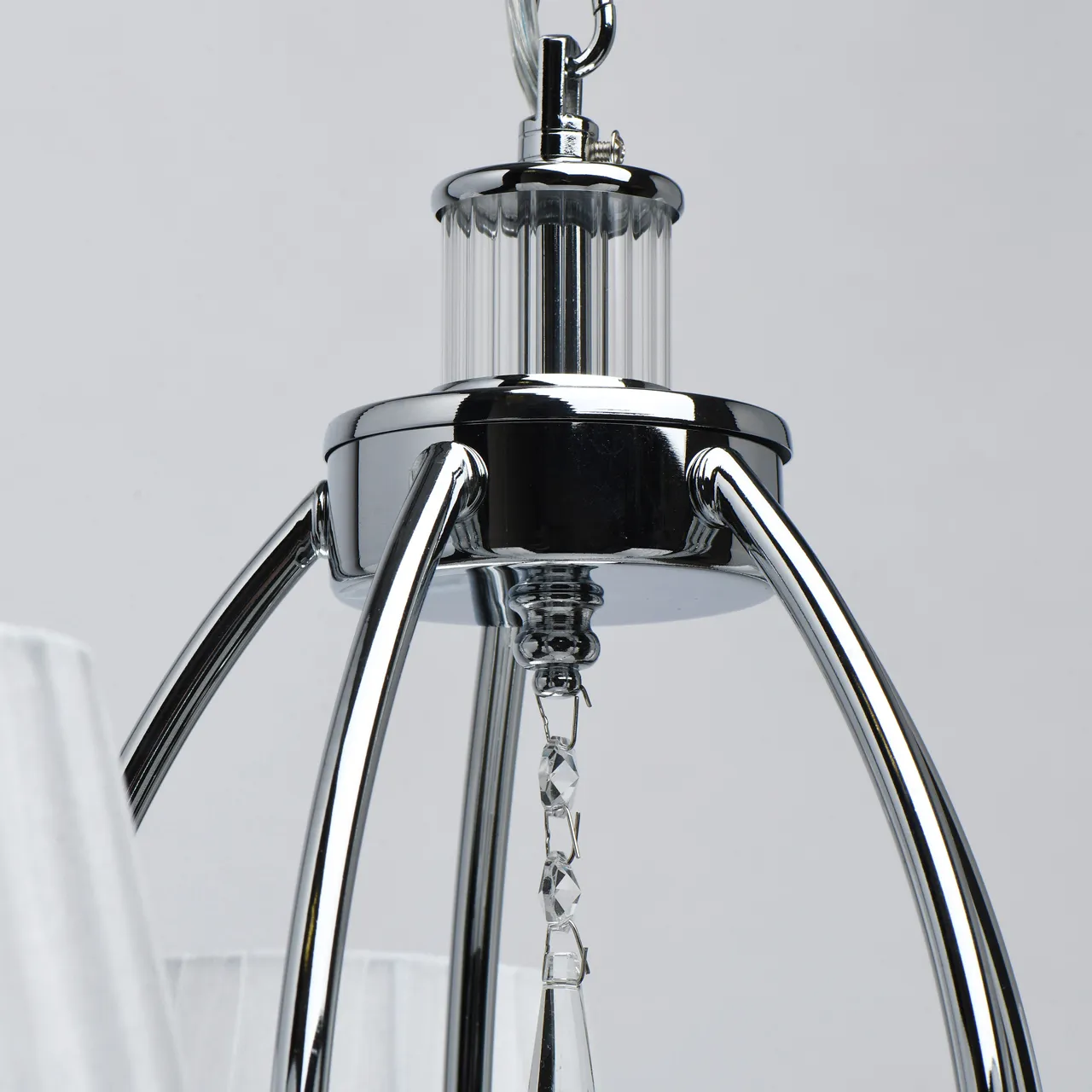 Основание/ металл/ хром Абажур/ текстиль/ белый Декор/ хрусталь/ прозрачный