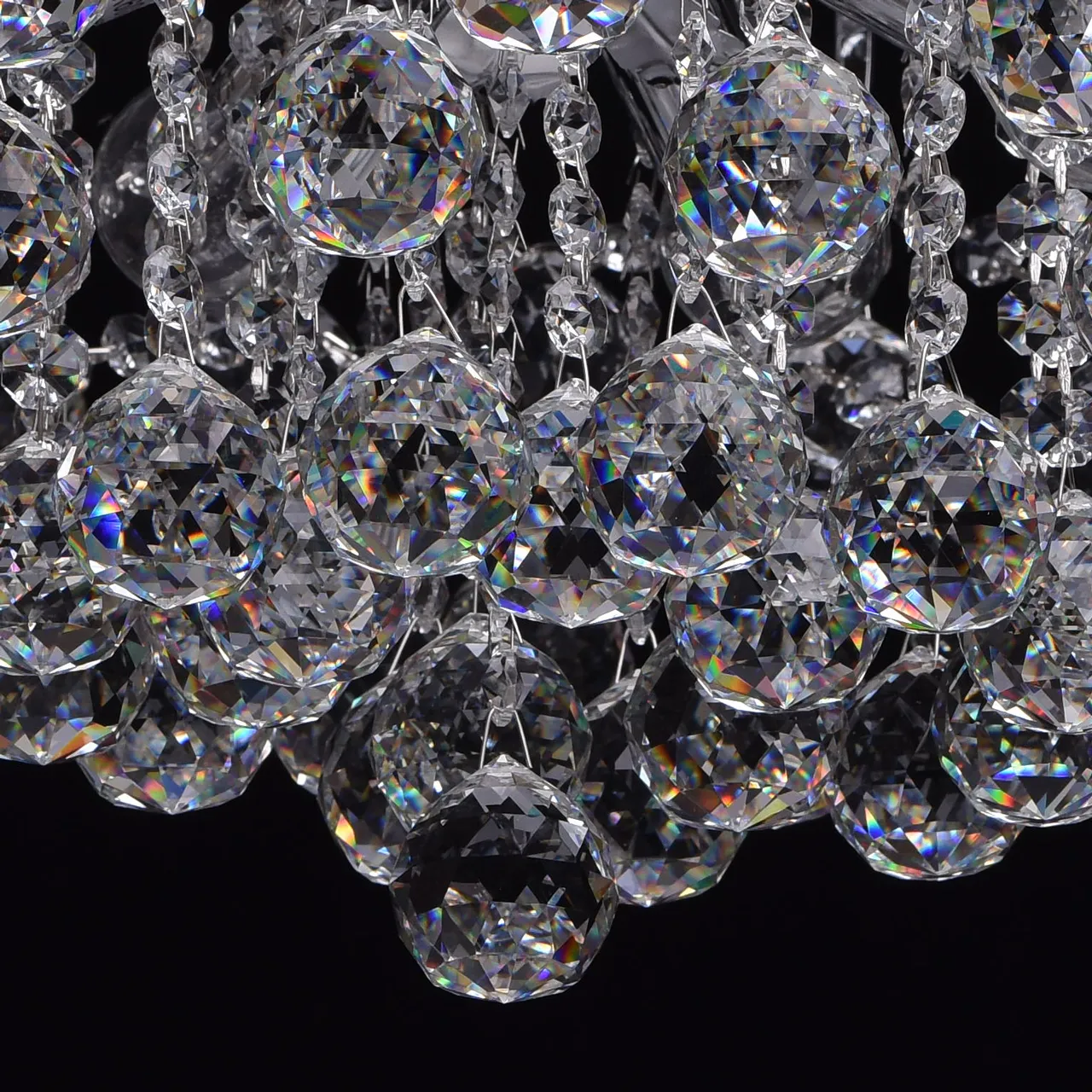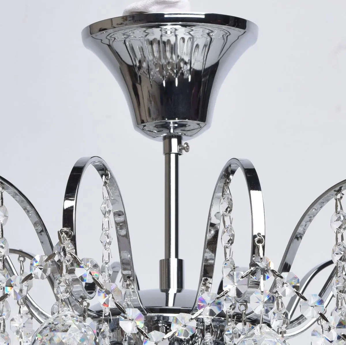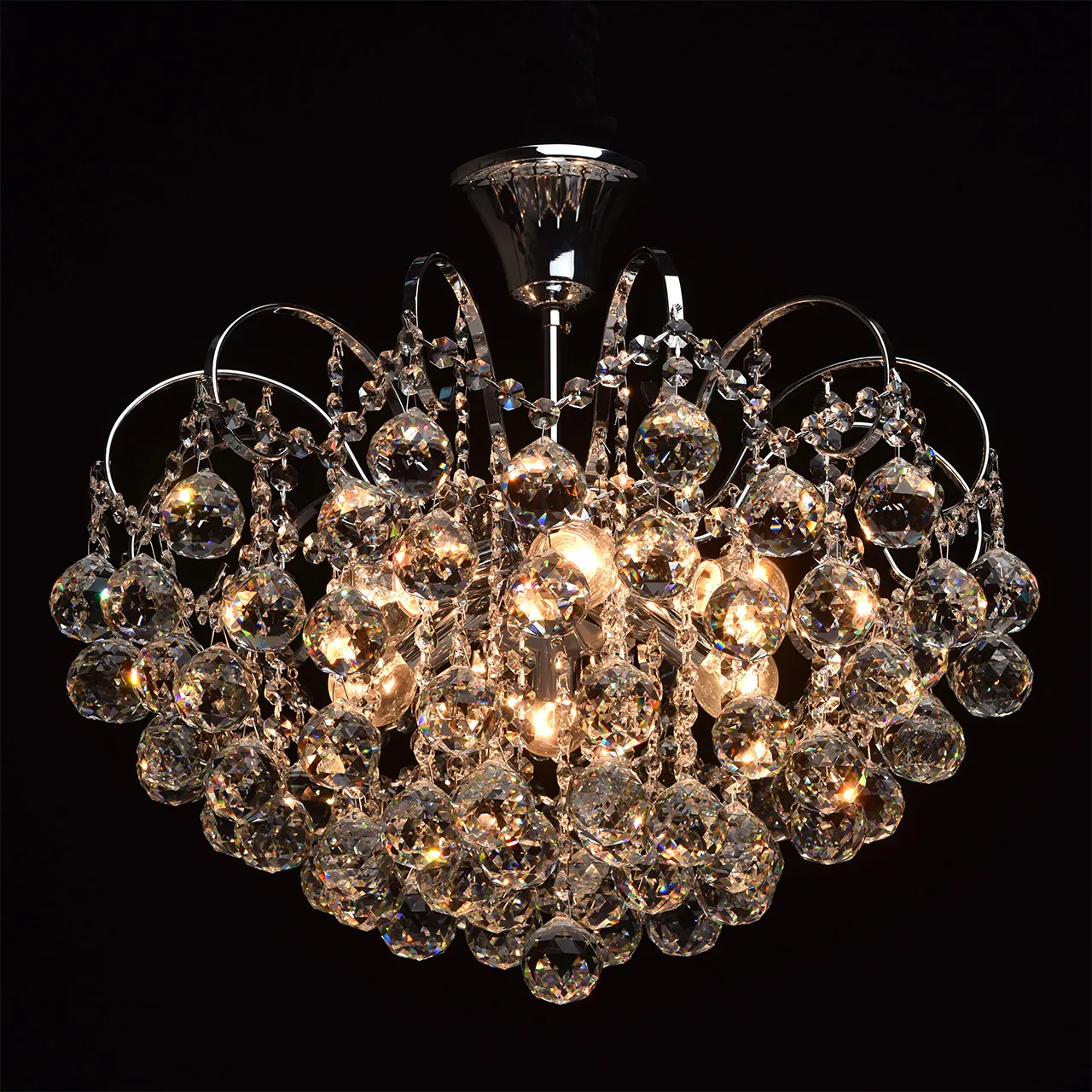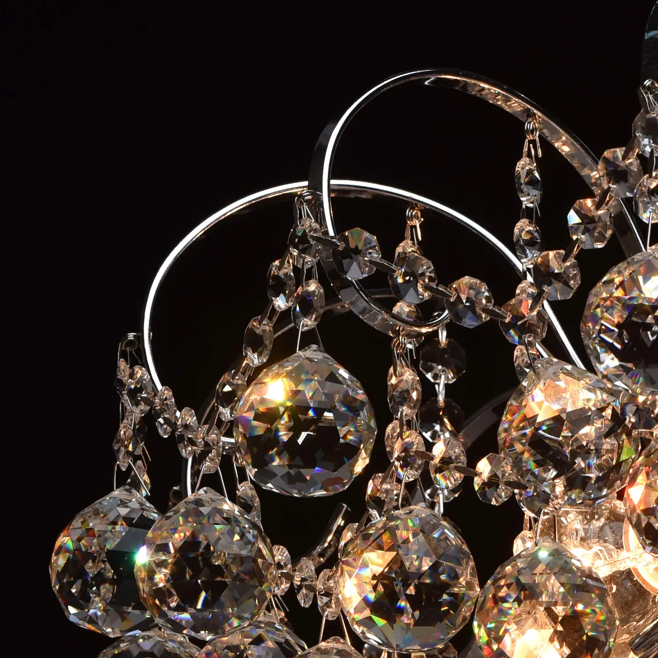 Металлическое основание цвета хрома, декоративные подвески из хрусталя