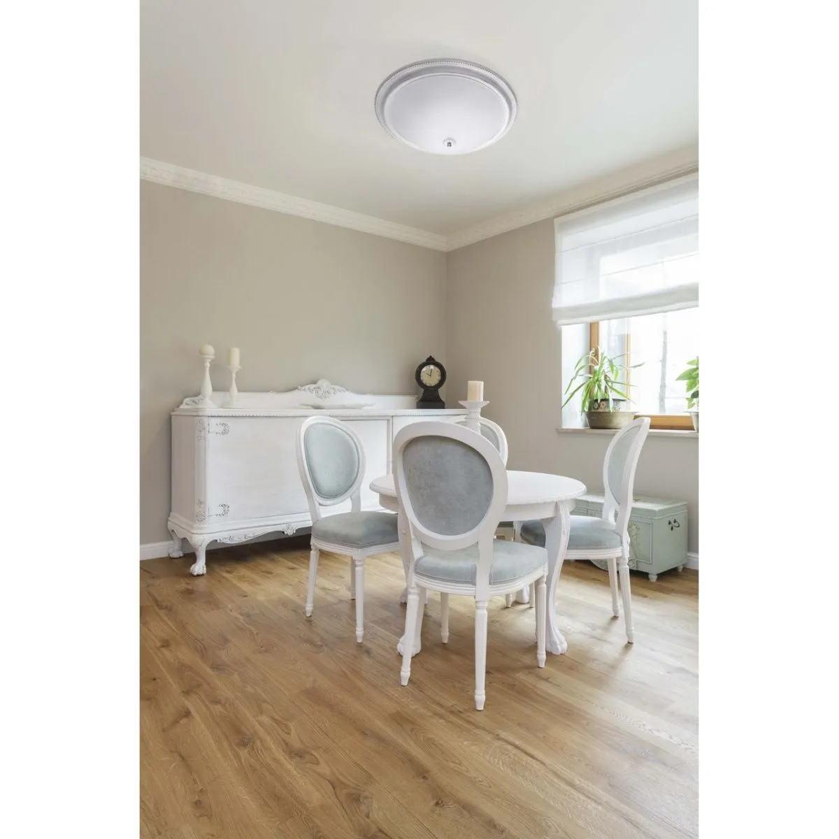 Металлическое основание белого цвета с золотистой патиной. Плафоны: матовый стеклянный плафон.
